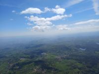 Compliqué de décoller, je m'y prends à quatre fois. Par contre ca monte en sortie de déco. Un thermique me monte à 2300m, et je pars dans le dérive du vent. Changement de cap pour une route plus sud pour éviter une TMA (qui n'existe pas, mais je ne l'apprendrai qu'à mon retour @!$%). À 60km/h de vitesse sol, on arrive rapidement un peu avant Aydat, où je remonte à 2300m. J'aimerais poursuivre avec les nuages vers le sud-est, mais encore cette TMA à l'est qui n'existe que dans ma tête me bloque. Je poursuis ma route vers le sud. Vient un moment où je me fais descendre continuellement et je finis sur le plancher des vaches.