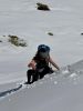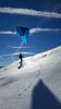 Je propose a Re de decoller sans moi, si il y a doute, il n’y a pas de doute, je prefere redescendre à pied, je sens que lui a envie de decoller. Il refuse et nous entamons la redescente... a peine 20m de fait que le vent semble se calmer ... je me fige, j’essaie de rationaliser, frimousse au vent ... Re continue 10m de plus avant de se retourner et de me voir, immobile, hésiter à nouveau. Finalement, il remonte vers moi, et nous décidons de nous mettre sur un petit replat et de sortir les voiles. Re gongle en premier, joue avec sa voile et remonte d’une dizaine de m. Le vent oscille entre 10 et 15km/h (voire moins parfois) et semble plutot laminaire (assez etrange ce changement de conditions si rapide) , tjs orienté plutot E NE. Mais la voile reste calme au dessus de sa tête, et l’aerologie semble saine. Nous sommes à 2150m ... il faut absolument passer la crête. 15mcarre pour 100kg, Re se lance en premier et se jette sur la crête... il est largement au dessus et peut se jeter en vallée. Je remonte les 10m au dessus, peu à l’aise avec l’idée de gonfler ma susi sur une crête, la moindre rafale et manque de controle pouvant me traîner dans les éboulis derriere. Tout se passe bien, je ne prends pas le temps de jouer avec l’aile, je prefere decoller. Le passage de la crete se fait aisément aussi, petit coucou au groupe de 20 anciens qui randonnaient. Et direction la vallée. 20min de vol pour aller poser, que dis je, crateriser le sol de la maurienne sans le moindre vent en bas.