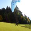 Demi-tour je me retrouve 200m sous le relief, et je surfe sur les arbres, sur ces belles couleurs automnales, tout en gardant de la marge par rapport au relief, tant pis si je ne raccroche pas, et mètre par mètre, je grignote et je regrimpe au niveau du déco puis à nouveau bien au-dessus pour enrouler avec 3 autres voiles mais je commence à ressentir le froid au mains, va falloir reprendre les gants zivernaux, et je profite de mon gaz pour bien me balader localement avant de poser en visant la cible, tout bon dans le rond blanc !